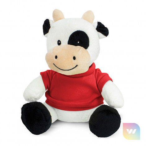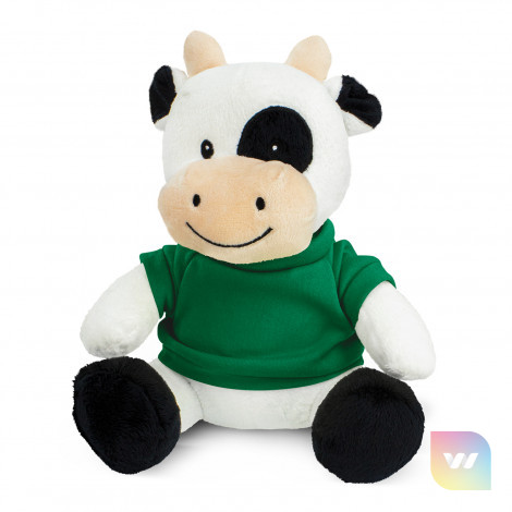 Soft cow plush toy with embroidered eyes, RPET filling and a polyester t-shirt which is available in eleven colours. Plush animals provide a cute and cuddly branding option and are great for brand recognition and spreading goodwill. They have also been manufactured to meet with AS/NZS Safety Toy Standards.