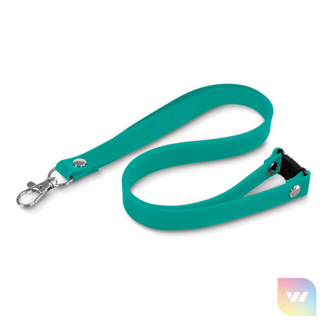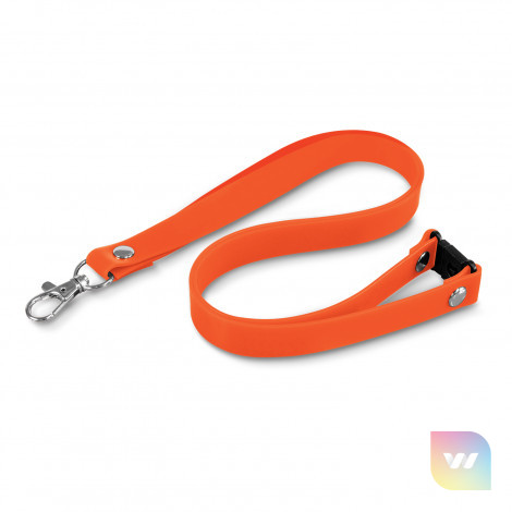 Unique 15mm wide silicone lanyard with a spring loaded metal clip and a safety clip. A production lead time of 25 working days applies to this product by air freight and larger orders can be sea freighted on request to reduce the freight cost.