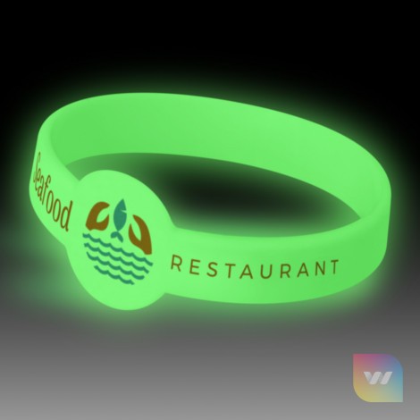 Silicone wrist band with an extra branding spot for maximum impact. It is manufactured from a special silicone that glows in the dark. Xtra is ideal for night clubs, beach parties, concerts and any night time event. One size fits all and an optional polybag with or without a full colour label is available on request. A production lead time of 25 working days applies to this product by air freight and larger orders can be sea freighted on request to reduce the freight cost.