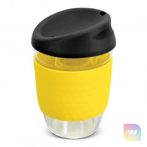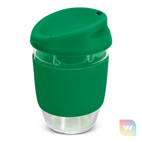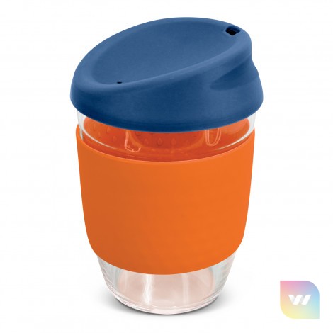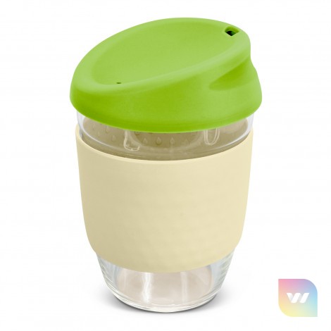 Elegant 350ml reusable borosilicate glass coffee cup with a secure push on silicone lid and a wide heat-resistant silicone band. Borosilicate is lightweight, exceptionally strong and shatter-resistant. It is a BPA-free choice for a clean, pure taste and is a natural alternative to single-use paper cups. The lid and band can be mixed and matched in any colour combination from the standard colours at no extra cost. Up to five different colour combinations are included in the price and more are available for an additional charge. Nova Cup is presented in an unbleached cardboard gift box with a window to show the branding and product care instructions are printed on one side. An optional gift tube is available on request. This product is not dishwasher safe and handwashing is recommended. Nova Cup is protected under New Zealand Design Registration No. 426637 and Australian Design Registration No. 201916426.