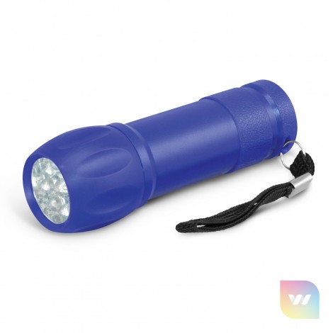 Compact torch with nine powerful LEDs and a woven strap. It is powered by three AAA batteries which are included.