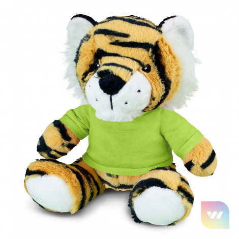 Soft tiger plush toy with embroidered eyes, RPET filling and a polyester t-shirt which is available in eleven colours. Plush animals provide a cute and cuddly branding option and are great for brand recognition and spreading goodwill. They have also been manufactured to meet AS/NZS Safety Toy Standards.