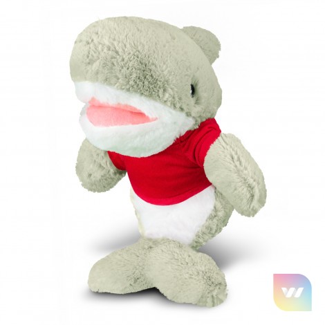Soft shark plush toy with embroidered eyes, RPET filing and a polyester t-shirt which is available in eleven colours. Plush animals provide a cute and cuddly branding option and are great for brand recognition and spreading goodwill. They have also been manufactured to meet AS/NZS Safety Toy Standards.
