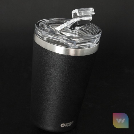 Timeless Swiss Peak design is very evident in this smart 350ml vacuum cup. Its double wall vacuum insulation will keep drinks hot or cold for longer and the tough powder coating laser engraves to shiny steel finish. This BPA-free cup has a secure screw on transparent Tritan lid with a leak resistant flip closure that locks open when in use. It is beautifully presented in a Swiss Peak gift box with an information leaflet included. This product is not dishwasher safe and handwashing is recommended.