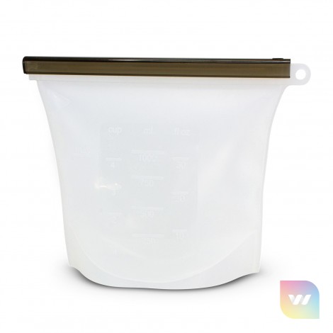 Store and preserve food for longer with a reusable silicone storage pouch. The 1L pouch is leakproof with a sturdy zip-lock closure and can be used in the microwave and freezer. Manufactured from strong BPA-free silicone, this product can be folded for compact storage or stored flat. A gusset provides additional space and both sides of the pouch have metric, imperial and cup measurements. A production lead time of 30 working days applies to this product by air freight and larger orders can be sea freighted on request to reduce the freight cost.