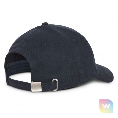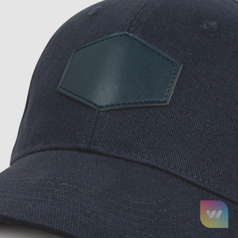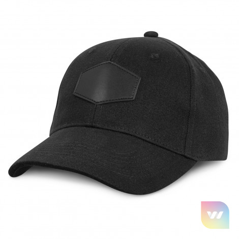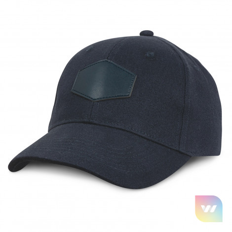 Premium structured six panel cap which is made from cotton twill. It has a matching leather-look hexagonal patch that provides an affordable branding option. Other features include a pre-curved peak, embroidered eyelets, a sweatband and an adjustable closure with a smart matte chrome buckle that allows one size to fit most people.