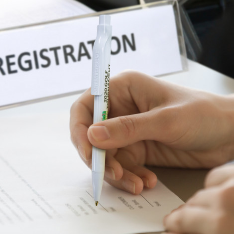 Retractable plastic ballpoint pen which is has an anti-microbial additive in the plastic, making it an ideal pen for use in highly frequented areas. It has text supporting its anti-microbial properties moulded into the clip and features large branding areas on the barrel. It has a blue refill with 1200m of German manufactured Dokumental ink and can be presented in an optional pen sleeve.