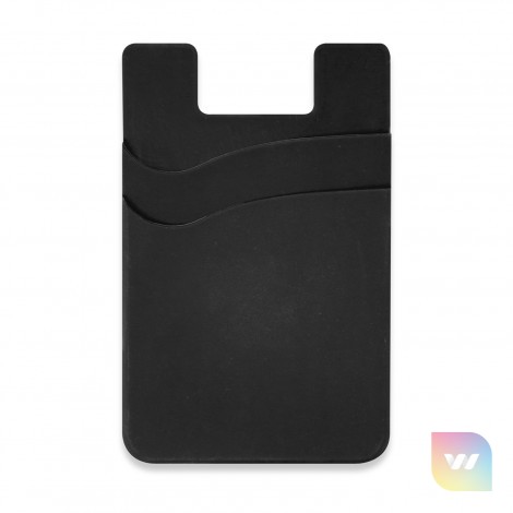 Soft-touch silicone wallet which adheres securely to the back of a phone or phone case with strong adhesive that won't leave marks if it is removed. It has two pockets and is ideal for holding a drivers licence, ID, hotel key, credit cards or business cards. A production lead time of 25 working days applies to this product by air freight and larger orders can be sea freighted on request to reduce the freight cost.