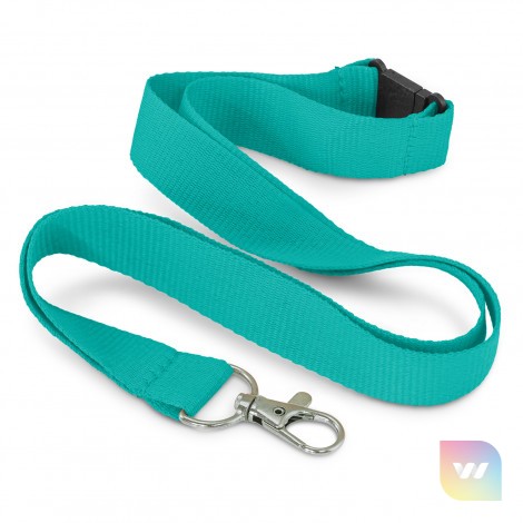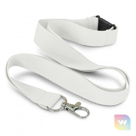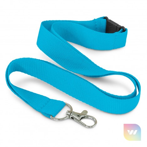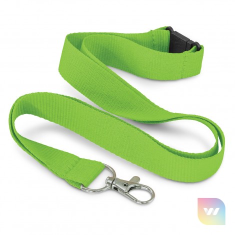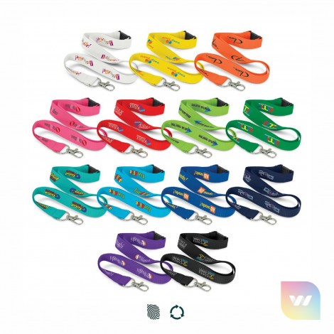 20mm wide lanyard that is manufactured from RPET material which is produced from recycled water bottles and food packaging. The lanyard has a metal clip and a safety clip with other attachments available on request. A production lead time of 25 working days applies to this product by air freight and larger orders can be sea freighted on request to reduce the freight cost.