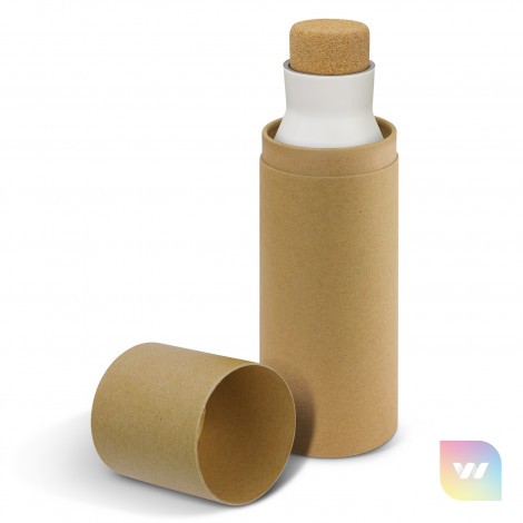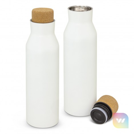 Stylish 630ml double wall, vacuum insulated stainless steel drink bottle with a secure screw on lid which is finished with natural cork. Moana is BPA-free and will keep drinks cold for 24 hours or hot for up to 12 hours. The bottle laser engraves to a shiny steel finish and is presented in a black gift box or an optional gift tube. This product is not dishwasher safe and handwashing is recommended.