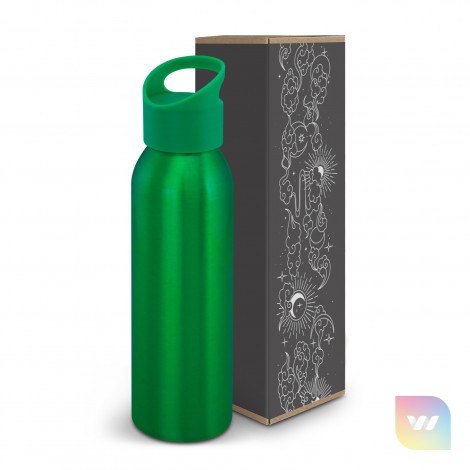 Lightweight 700ml aluminium drink bottle which has a secure screw on lid with a carry handle. It is BPA-free and can be presented in an optional natural gift box. This product is not dishwasher safe and handwashing is recommended.