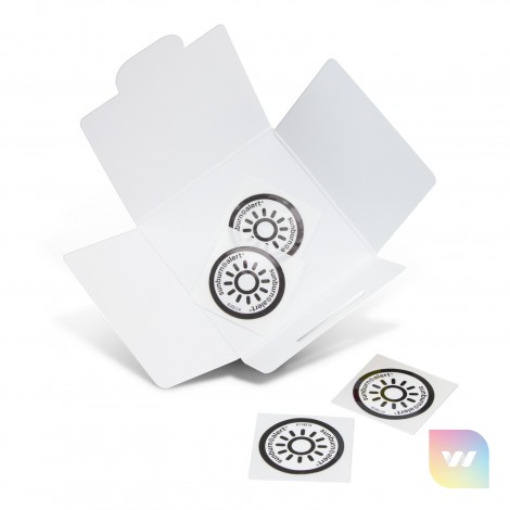 Pack of four Sunburn Alert Stickers that take the guesswork away from when it is time to re-apply sunscreen. They are a practical and easy to use warning device for anyone who is out in the sun. The user places a sticker on the back of their hand and applies sunscreen over it at the same time it is being applied to other parts of the body. Each sticker is UV sensitive and turns blue when sunscreen protection diminishes and the skin is being exposed to harmful UV rays. The sticker will turn white again when sunscreen is re-applied, indicating protection has been restored. Instructions for application and use are printed on the cardboard pack and it can be branded in full colour on the front at no extra cost. This product is not suitable for children under three years old, does not contain sunscreen and does not protect the user against sunburn. A production lead time of 25 working days applies to this product by air freight.