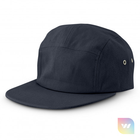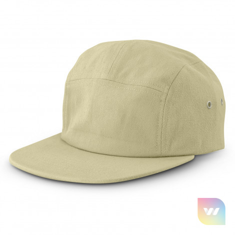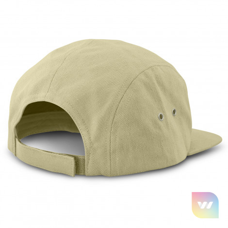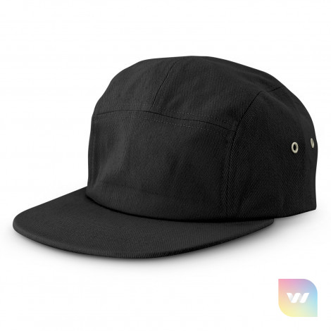 Stylish low profile, five panel cap with a flat peak. It is made from cotton twill with smart metal eyelets, a sweatband and an adjustable Velcro closure which allows one size to fit most people.