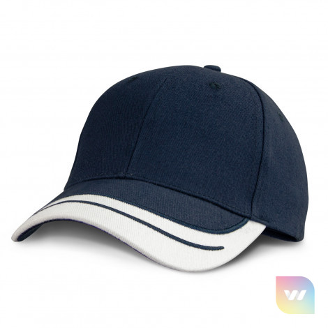 Fully customisable six-panel cap which is made from cotton twill and features a curved embroidery design on the peak. The colour of the cap fabric and the embroidery feature can be customised using colours from the standard colour palette. Other features include embroidered eyelets, a pre-curved peak, a sweatband and an adjustable snap closure which allows one size to fit most people. A production lead time of 35 working days applies to this product by air freight and larger orders can be sea freighted on request to reduce the freight cost.