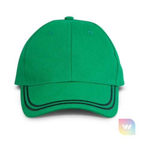 Fully customisable six-panel cap which is made from cotton twill and features an embroidered design on the peak. The colour of the cap fabric and the embroidery feature can be customised using colours from the standard colour palette. Other features include embroidered eyelets, a pre-curved peak, a sweatband and an adjustable snap closure which allows one size to fit most people. A production lead time of 35 working days applies to this product by air freight and larger orders can be sea freighted on request to reduce the freight cost.