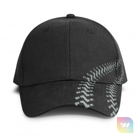 Perfect for racing and car enthusiasts, this fully customisable six-panel cap is made from cotton twill and features printed tyre tracks that run from the peak to the side of the cap. The colour of the cap fabric and the screen printed feature can be customised using colours from the standard colour palette. Other features include embroidered eyelets, a pre-curved peak, a sweatband and an adjustable snap closure which allows one size to fit most people. A production lead time of 35 working days applies to this product by air freight and larger orders can be sea freighted on request to reduce the freight cost.