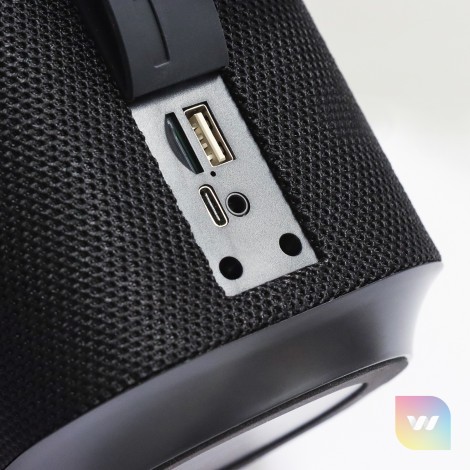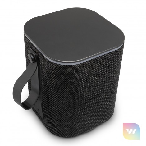 Extra-large deluxe 5W Bluetooth speaker which is compatible with all mobile devices that support Bluetooth. It is well suited for outdoor use and can also be used with an audio cable. The speaker has a colourful ambient light function with eight light display settings, a built-in microphone for phone calls, a silicone carry handle and music playback that can be controlled directly from the speaker. Lumos really attracts attention with its unique ability to brilliantly light up a brand. The artwork is laser engraved into the top of the speaker and illuminates when the light mode is on. Playing time is up to three hours and the speaker is easily recharged from a laptop, a power bank or a USB mains adapter. Lumos is presented in a black gift box with a Type-C cable, and an instruction leaflet.
