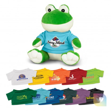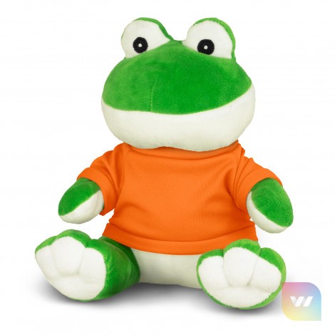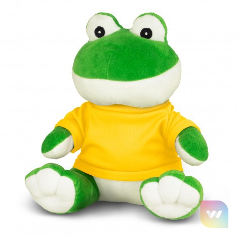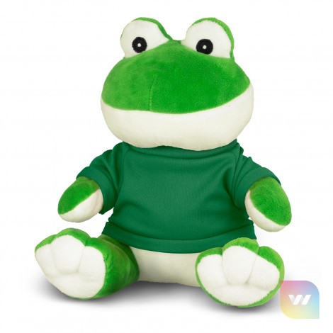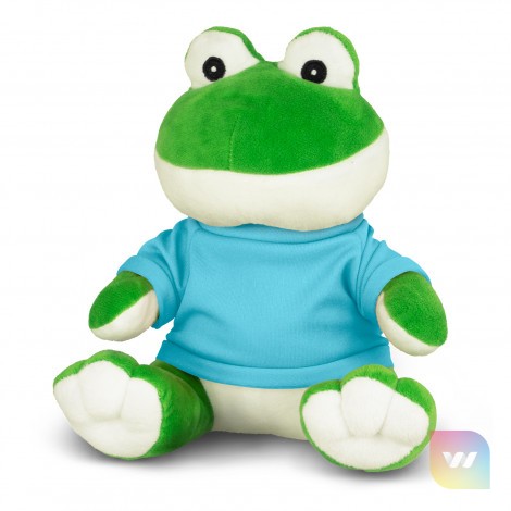 Soft frog plush toy with embroidered eyes, RPET filling and a polyester t-shirt which is available in eleven colours. Plush animals provide a cute and cuddly branding option and are great for brand recognition and spreading goodwill. They have also been manufactured to meet AS/NZS Safety Toy Standards.