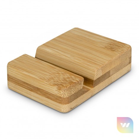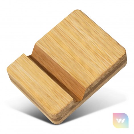 Minimalist phone stand that is manufactured from natural bamboo and will display a smartphone horizontally or vertically. Bamboo is a natural material and because the plant is fast growing, it places less demands on natural resources and produces a material that is durable and versatile. Bamboo can also produce unavoidable variances in the grain pattern, colour and branding.