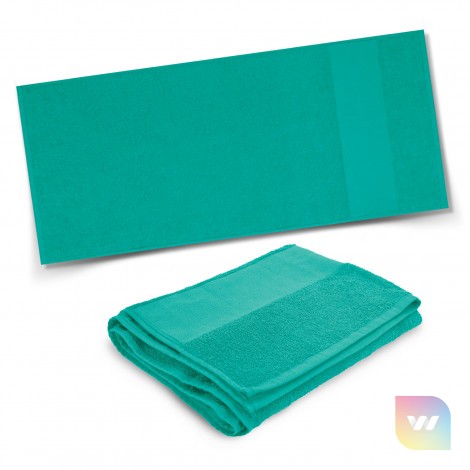 Compact 120cm x 60cm towel which is manufactured from soft 350gsm cotton terry towelling. It has a smooth fret area for branding.