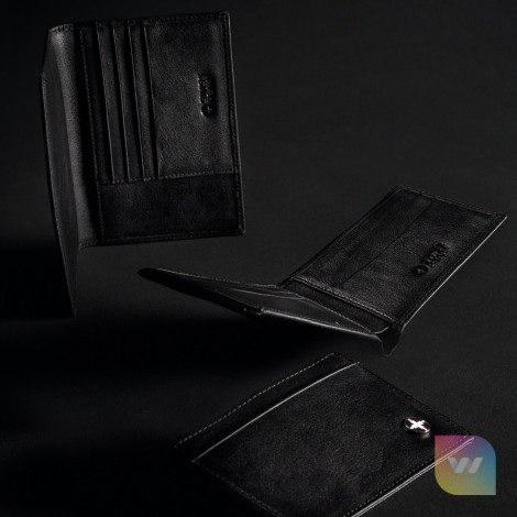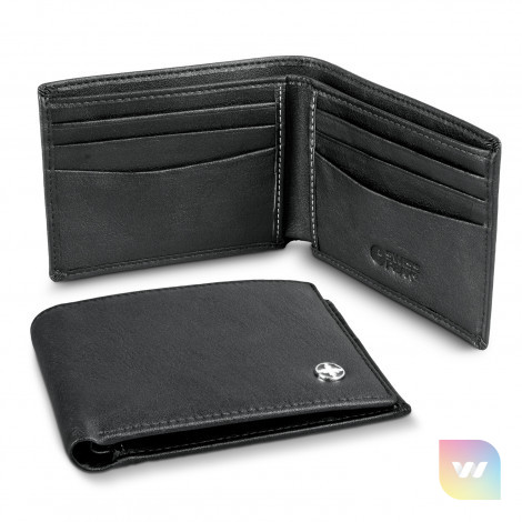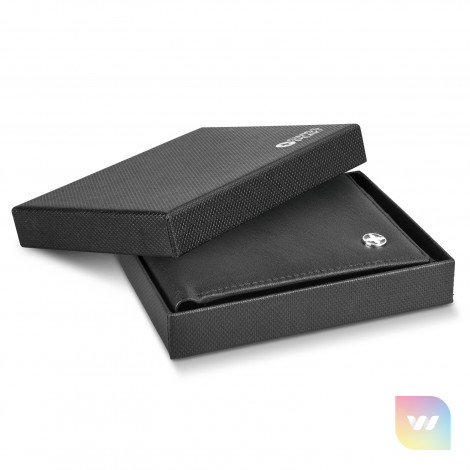 Keep your belongings safe with this durable timeless slim bi-fold wallet with anti-skimming protection. Manufactured from PU leather, the wallet hosts plenty of room with six slots fitting a maximum of 12 cards. The Swiss Peak logo is a button on the front of the wallet and tastefully debossed on the inside of the wallet. Laser engraving on this product comes as a natural etch. This premium wallet is presented in a deluxe Swiss Peak gift box.