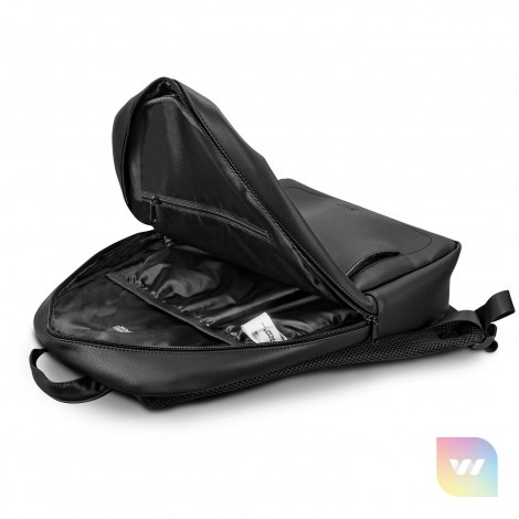 Make your daily commute easier with this premium Swiss Peak structured backpack manufactured from soft vegan leather (100% PU) with a 210D polyester interior. Main features include a 15.6-inch laptop pocket, a luggage strap, an internal zip pocket, and a top zip closure. The backpack also features adjustable shoulder straps and a top carry handle. The Swiss Peak logo is debossed on the front bottom of the bag.
