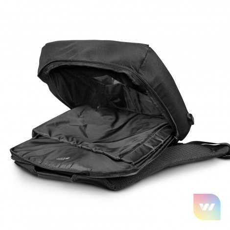 Inspired by a minimalist lifestyle, this Swiss Peak Anti-Theft RFID Backpack is the best addition to anyone’s commute with comfort in mind. Made from Polyester with a Leather Look PU on the front, this bag includes a 15-inch padded laptop pocket and other small internal pockets to fit your daily essentials. Other features include a USB side output, a padded back, and padded adjustable shoulder straps. The Swiss Peak logo is on the front of the backpack and on the internal laptop pocket.