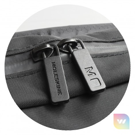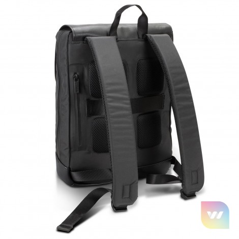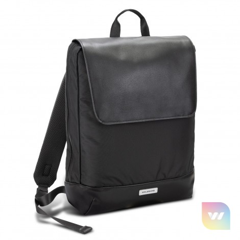 The Moleskine Metro Slim Backpack is an urban lightweight backpack designed to go with you everywhere and carry the day’s essentials. This luxury backpack features a flap with magnetic closure and a water-resistant zip to keep all your essentials safe. Inside, the backpack features an organizer, two pen holders, a business card holder, a secure pocket and an inner compartment to protect your laptop. The Metro Slim is fitted with an adjustable padded shoulder strap and breathable air-mesh back for exceptional comfort on the go and a rear luggage sleeve will slide over the handle of a rolling suitcase. A reflective Moleskine logo is sewn onto the leather-look PU base of the backpack. Please note this product cannot be supplied without the Moleskine logo. Moleskine reserves the right to decline any custom project or artwork that does not align with its brand on a case-by-case basis.