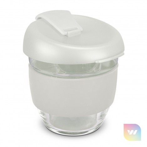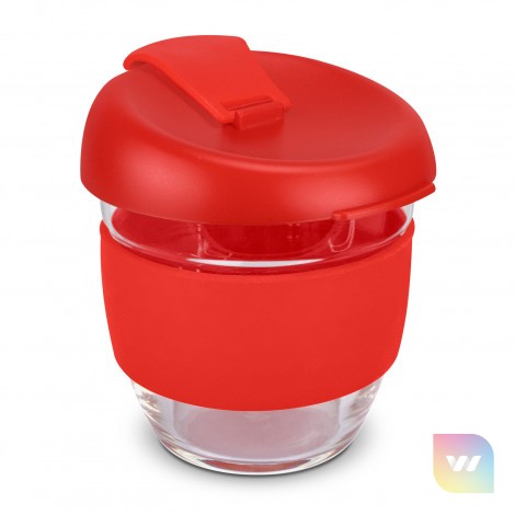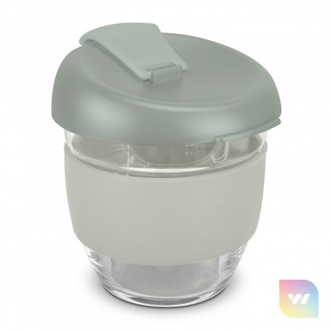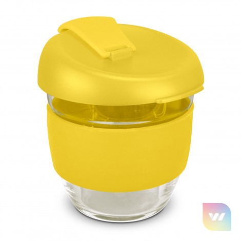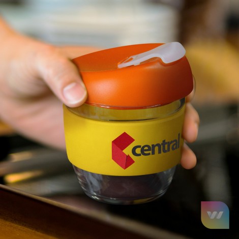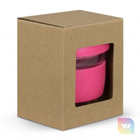 Elegant 250ml reusable borosilicate glass coffee cup with a secure push on plastic lid with silicone seal and a wide heat-resistant silicone band. Borosilicate is lightweight, exceptionally strong and shatter-resistant. It is a BPA-free choice for a clean, pure taste and is a natural alternative to single-use paper cups. The lid and band can be mixed and matched in any colour combination from the standard colours at no extra cost. Up to five different colour combinations are included in the price and more are available for an additional charge. Stellar Cup is presented in a natural gift box with a window to show the branding and product care instructions are printed on one side. An optional gift tube is available on request. This product is not dishwasher safe, and handwashing is recommended. Stellar Cup is protected under New Zealand Design Registration No. 428176 and Australian Design Registration No. 202016235.