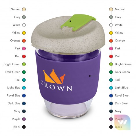 Design inspired 350ml reusable coffee cup that has an incredible story to tell. Manufactured from borosilicate glass, it has a heat-resistant silicone band and a secure push on lid which is manufactured from a 50/50 blend of natural wheat straw fibre and BPA-free polypropylene, with a silicone seal. The flip closure and band can be mixed and matched in any colour combination from the standard colours. Up to five different colour combinations are included in the price and more are available for an additional charge. The cup is presented in a natural gift box with a window to show the branding and product care instructions are printed on one side. An optional gift tube is available on request. This product is not dishwasher safe, and handwashing is recommended. Stellar Cup is protected under New Zealand Design Registration No. 428176 and Australian Design Registration No. 202016235.