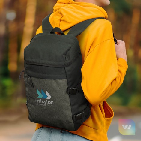 Modern two-tone backpack which is manufactured from 600D polyester. Campster has a top flap zippered closure with two compartments in the main pocket. There is also a front zippered pocket with a concealed side pocket. Other features include a top handle, adjustable clips on the side, a padded back and adjustable shoulder straps making it the perfect everyday bag.