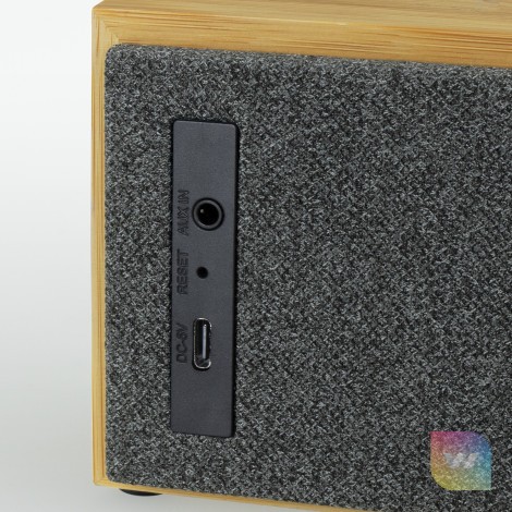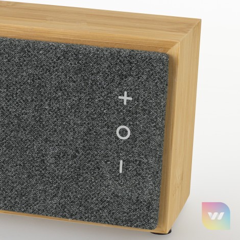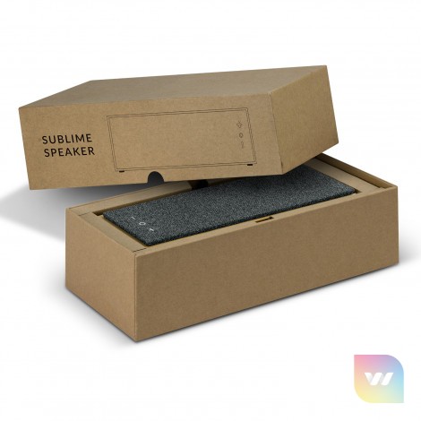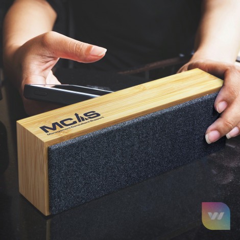 Large 10W Bluetooth speaker which is compatible with most mobile devices that support Bluetooth. Manufactured from bamboo with a heather polyester front, Sublime is the perfect addition to any setting. It has a wireless connectivity range of over 10 metres and a playing time of approximately 6 hours depending on the volume. It is easily recharged from a laptop, a power bank or a USB mains adapter and it is supplied with a Type C cable and an instruction leaflet. Bamboo is a natural material which produces unavoidable variances in the grain pattern, colour and branding.