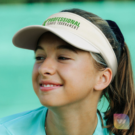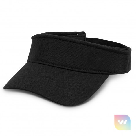 Premium quality polyester mesh sun and sports visor with a pre-curved peak, a sweatband and an adjustable Velcro closure which allows one size to fit most people.