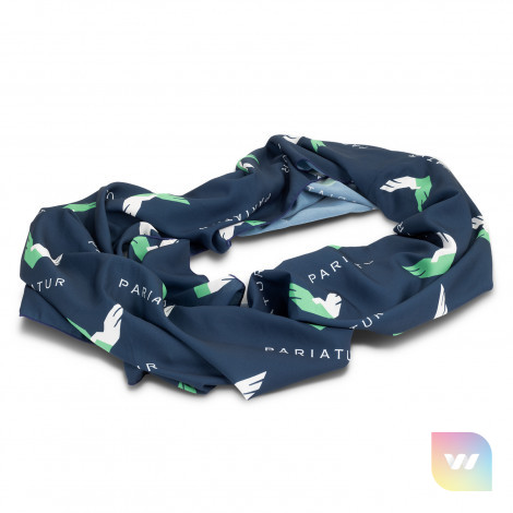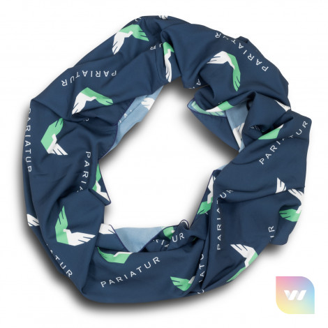 Luxury infinity scarf with lock finished edges made from 70gsm crepe fabric. Berlin offers edge-to-edge full colour branding and the lock edging is closely matched with the colouring in the scarf. A production lead time of 35 working days applies to this product by air freight and larger orders can be sea freighted on request to reduce the freight cost.