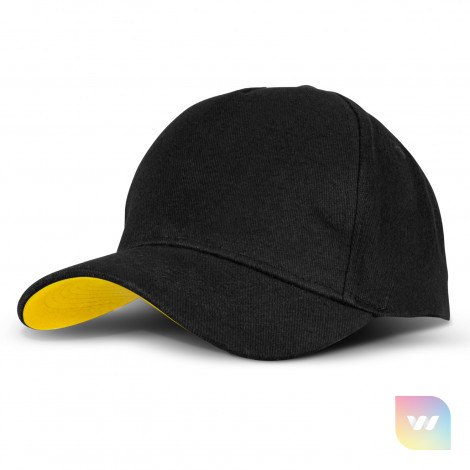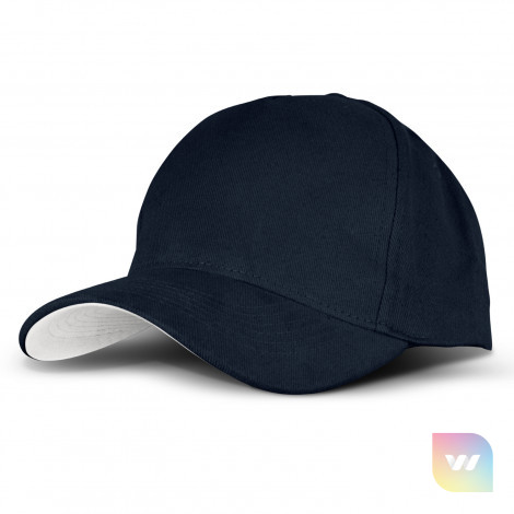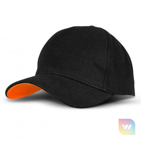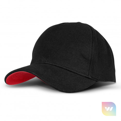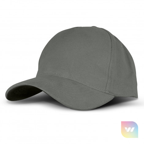 Premium quality structured five panel cap which is made from 100% cotton. It features a pre-curved peak with coloured trim, embroidered eyelets, a sweatband and an adjustable Velcro closure which allows one size to fit most people.