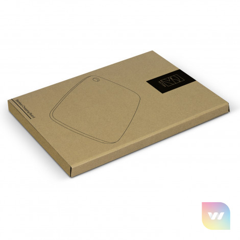 Natural bamboo chopping board. It is presented in natural kraft gift box with NATURA branding.