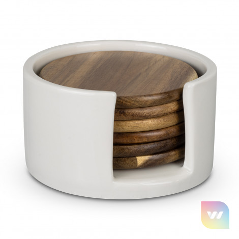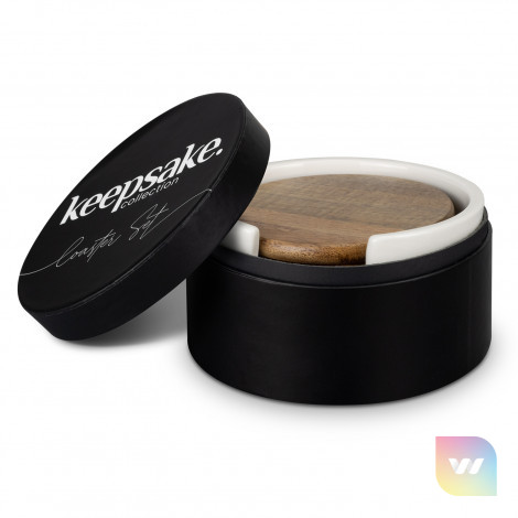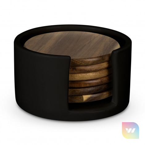 This premium set includes six circular acacia wood coasters paired with a ceramic storage holder for a balance of style and function. Crafted from durable acacia wood, the coasters protect surfaces while adding a natural, timeless look. Presented in a black branded keepsake gift tube, this set makes a sophisticated addition to any home or office.