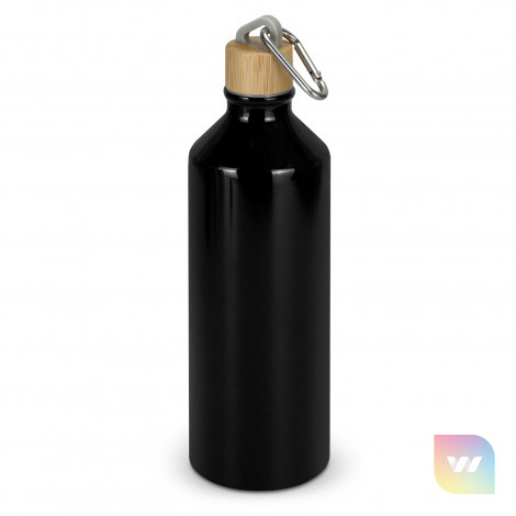 Lightweight 750ml aluminium bottle featuring a screw on bamboo lid with a carabiner. An optional natural gift box is available on request.