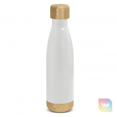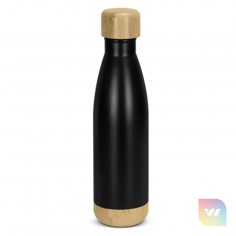 Elegant 500ml stainless steel vacuum bottle with a bamboo lid and base. It has a satin finish and comes in a natural gift box.