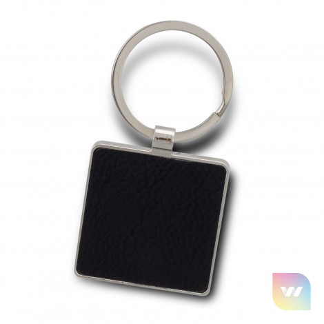 Durable shiny nickel key ring with a black textured PU that engraves to a silver finish. Presented in an individual black box.
