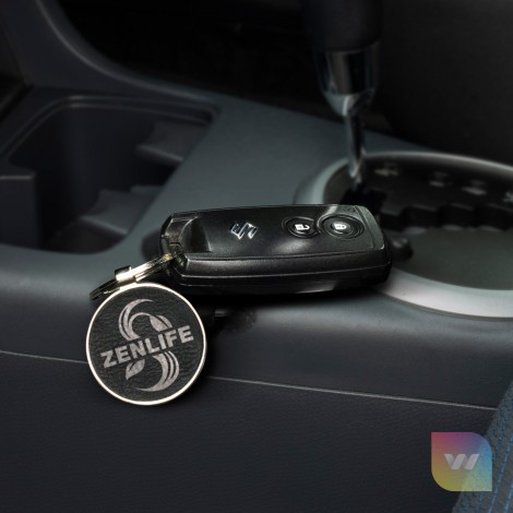 Stylish shiny nickel key ring with a black textured PU that engraves to a silver finish. Presented in an individual black box.