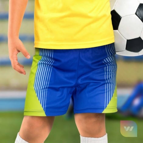 Multi-functional custom kids sports shorts manufactured from 180gsm 100% Polyester Ultra Mesh. material that is breathable and has a soft feel. Fitted with an elastic waistband with a drawstring. The custom artwork is PMS matched with personalisation free of charge. A production lead time of 35 working days applies to this product.