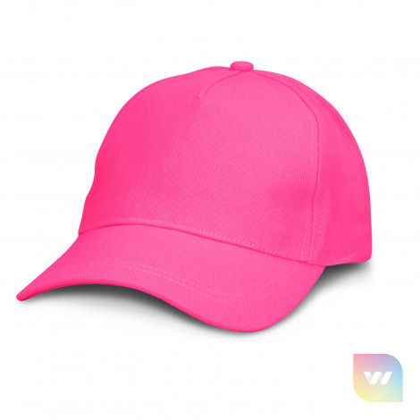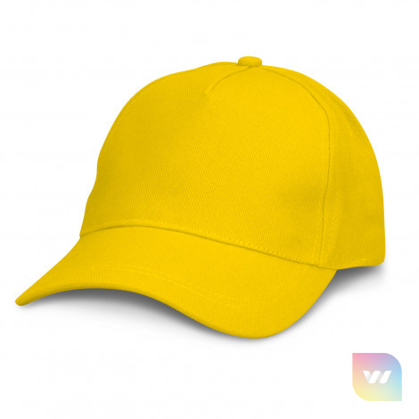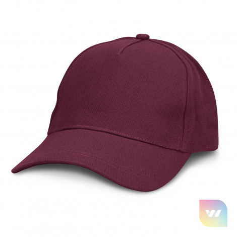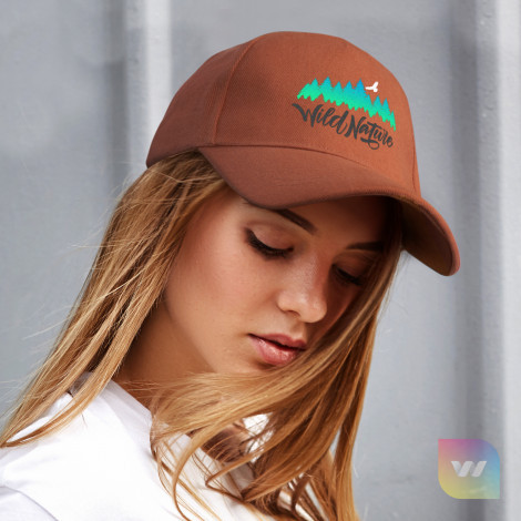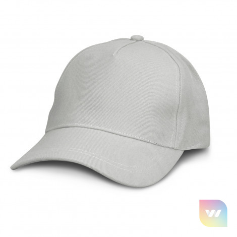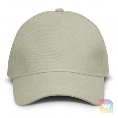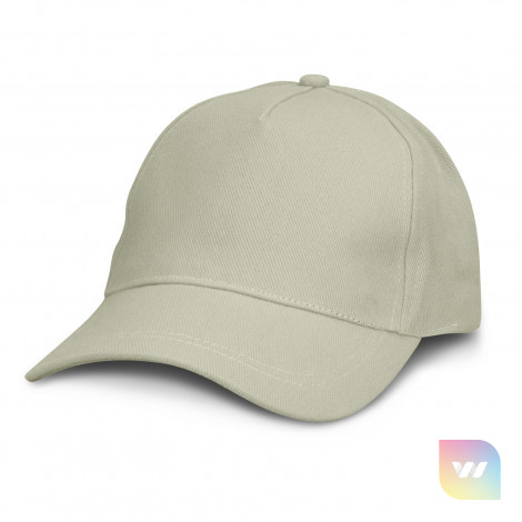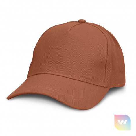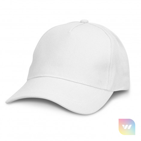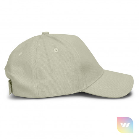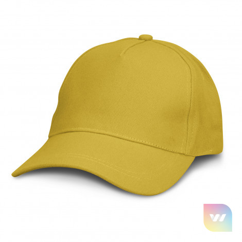 Premium five panel cap made from 100% cotton twill. It has a pre-curved peak, embroidered eyelets, a sweatband and an adjustable Velcro closure, allowing one size to fit most people.