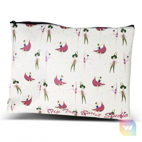 Large cosmetic bag manufactured from leather look PU and is branded in full colour on both sides with no extra cost. Flora has a black zipper and the stitching matches the zip colour. A production lead time of 25 working days applies to this product.