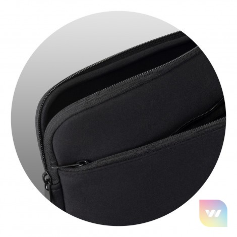 Sophisticated and durable device sleeve made to fit laptops and tablets up to 16" in size. The Neoprene material gives devices extra cushioned protection. It features a front pocket with a matte black metal zip puller.