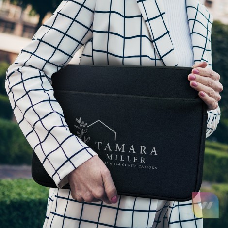 Sophisticated and durable device sleeve made to fit laptops and tablets up to 16″ in size. The Neoprene material gives devices extra cushioned protection. It features a front pocket with a matte black metal zip puller.