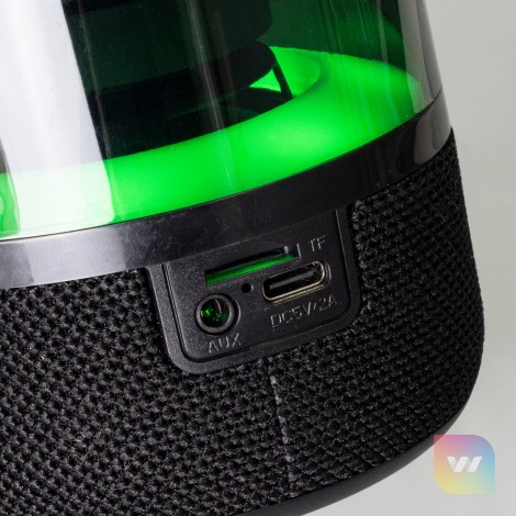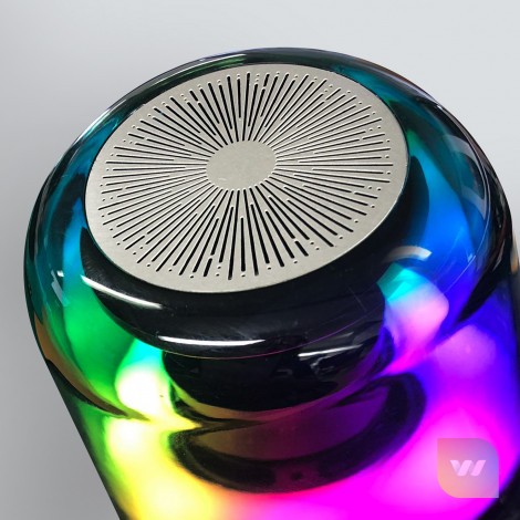 Luminous 8W Bluetooth speaker with light function including beat synchronization and the choice of light modes. Play music for up to 4 hours via Bluetooth, AUX cable or Micro-SD card. Spectrum is presented in a black gift box with a Type-C charging cable and instructions.