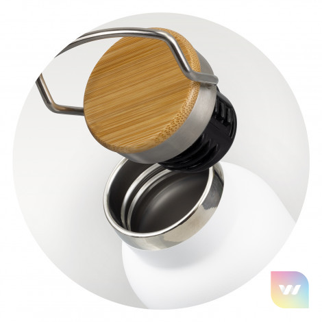 Classic 650ml double wall, vacuum insulated drink bottle with a tough powder coated finish. Made from stainless steel with natural bamboo trim, the bottle has a secure screw on lid with a convenient carry handle. An optional gift tube is available for presentation.