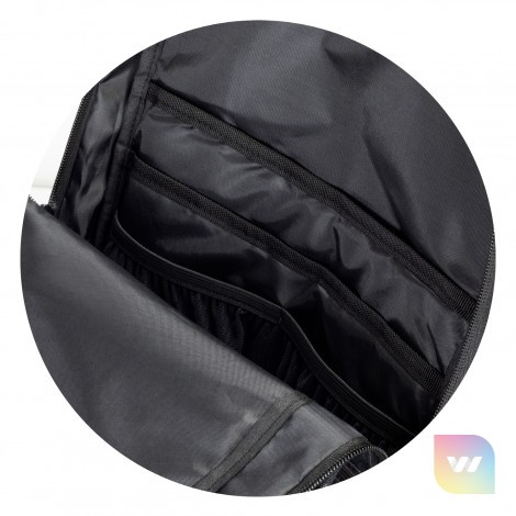 Camouflage backpack manufactured from 300D and 210D polyester. It has a practical straight front pocket, 4 internal slip pockets and a padded PE foam back for comfortable carrying. Other features include adjustable padded shoulder straps, a carry handle, and a water bottle holder.