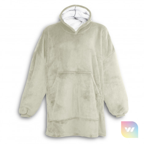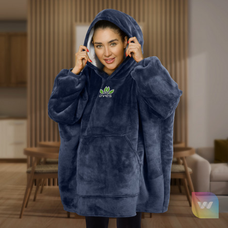 Extra-cosy blanket hoodie made from luxe 180gsm polyester flannel with a soft 180gsm sherpa lining for added warmth. The hoodie features a large kangaroo pocket on the front, and one size will fit most.
